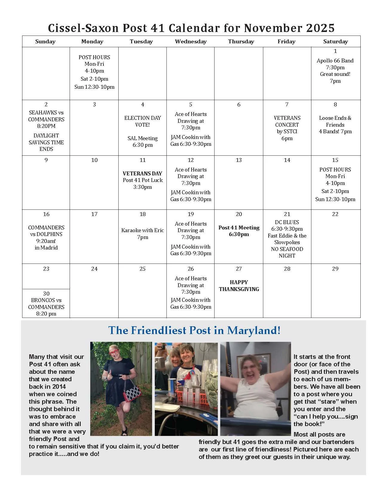 American Legion Post 41, 905 Sligo Avenue, Silver Spring, MD 20910 | Phone: (301) 588-8937 | Email: post41@verizon.net